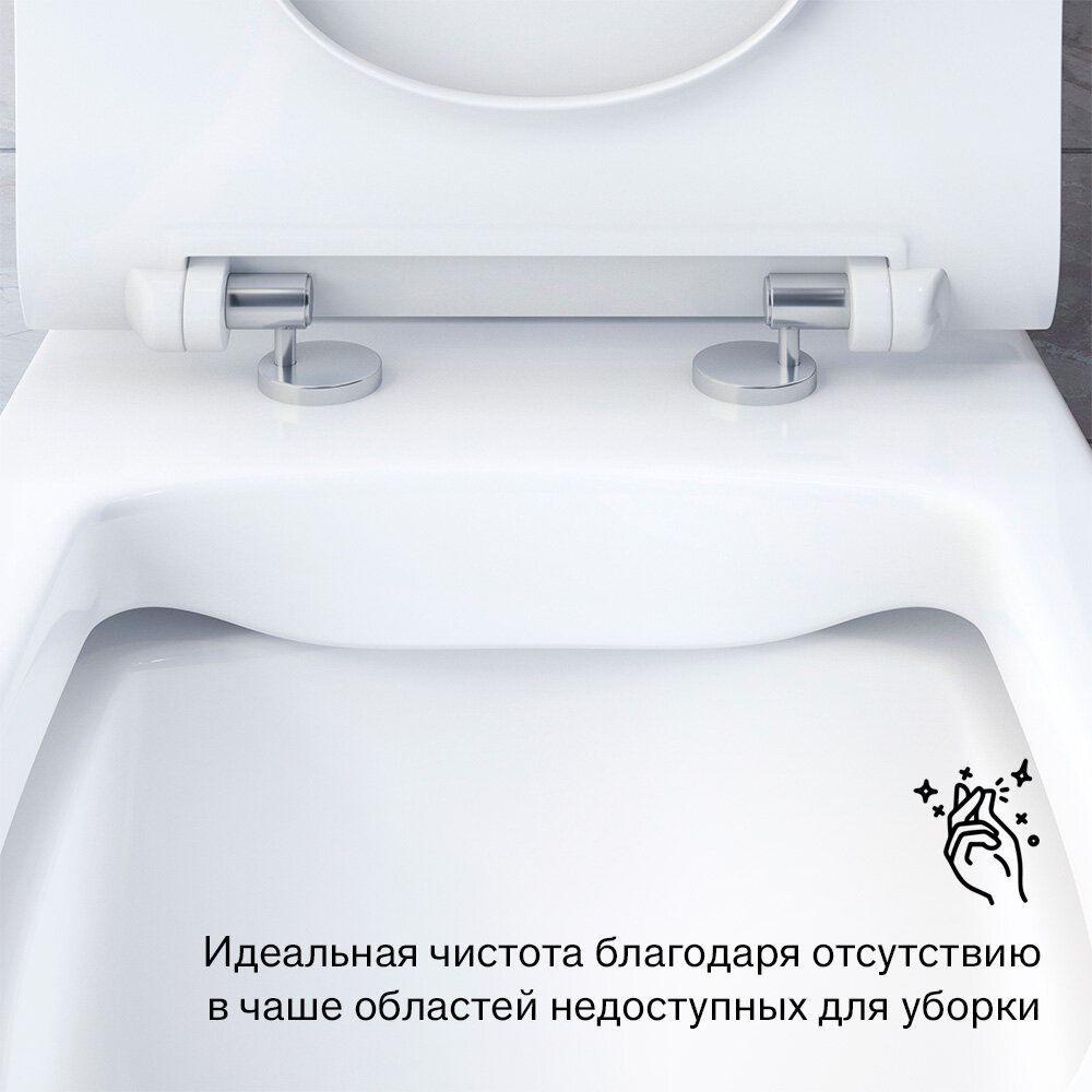 Купить Унитаз напольный Damixa Sirius DX86C8600SC безободковый, быстросъемное сиденье с микролифтом из дюропласта, антивсплеск, 25 лет гарантия