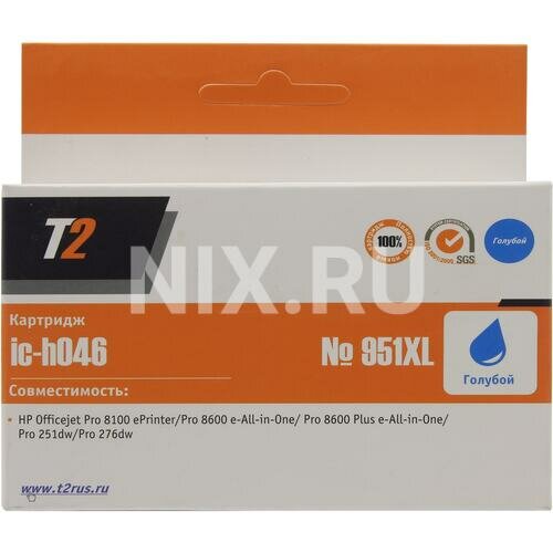 T2 Расходные материалы CN046AE 951XL Картридж IC-H046 951XL для HP Officejet Pro 8100 8600 8600 Plus 251dw 276dw, голубой, 1500 стр.