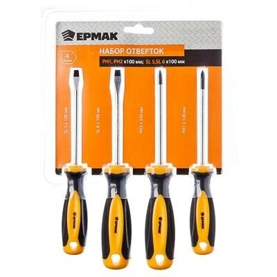 Набор отверток 4 предмета 9986 (PH1,PH2x100; SL5,SL6x100) ермак 651-059 ермак 651-059 | цена за 1 шт