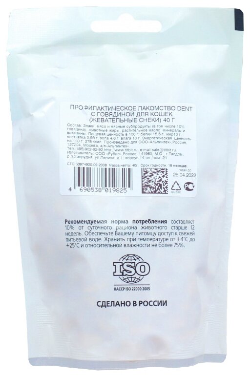 | Особенности | Без ГМО / Без ароматизаторов / Без искусственных консервантов / Без искусственных красителей / Без усилителей вкуса / Профилактика зубного налета |