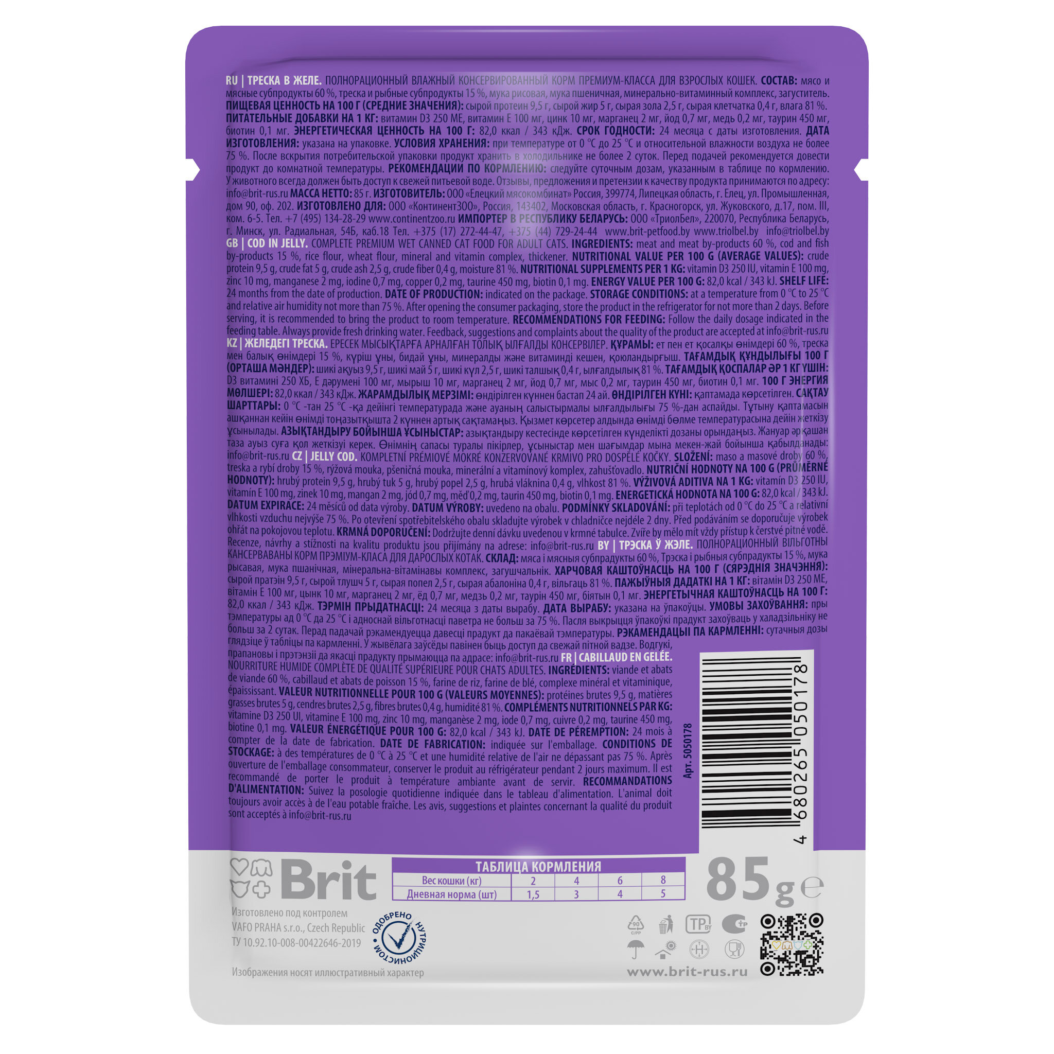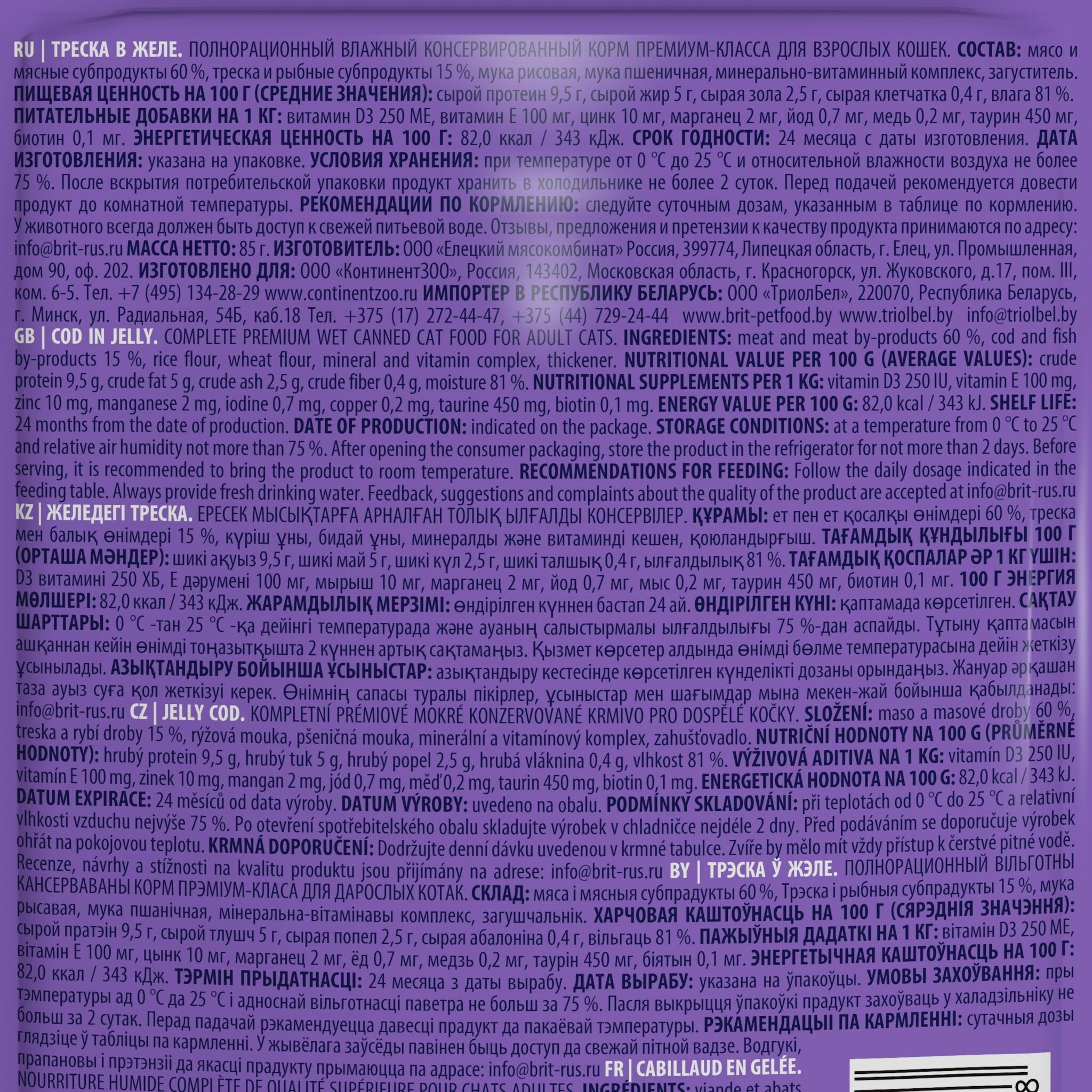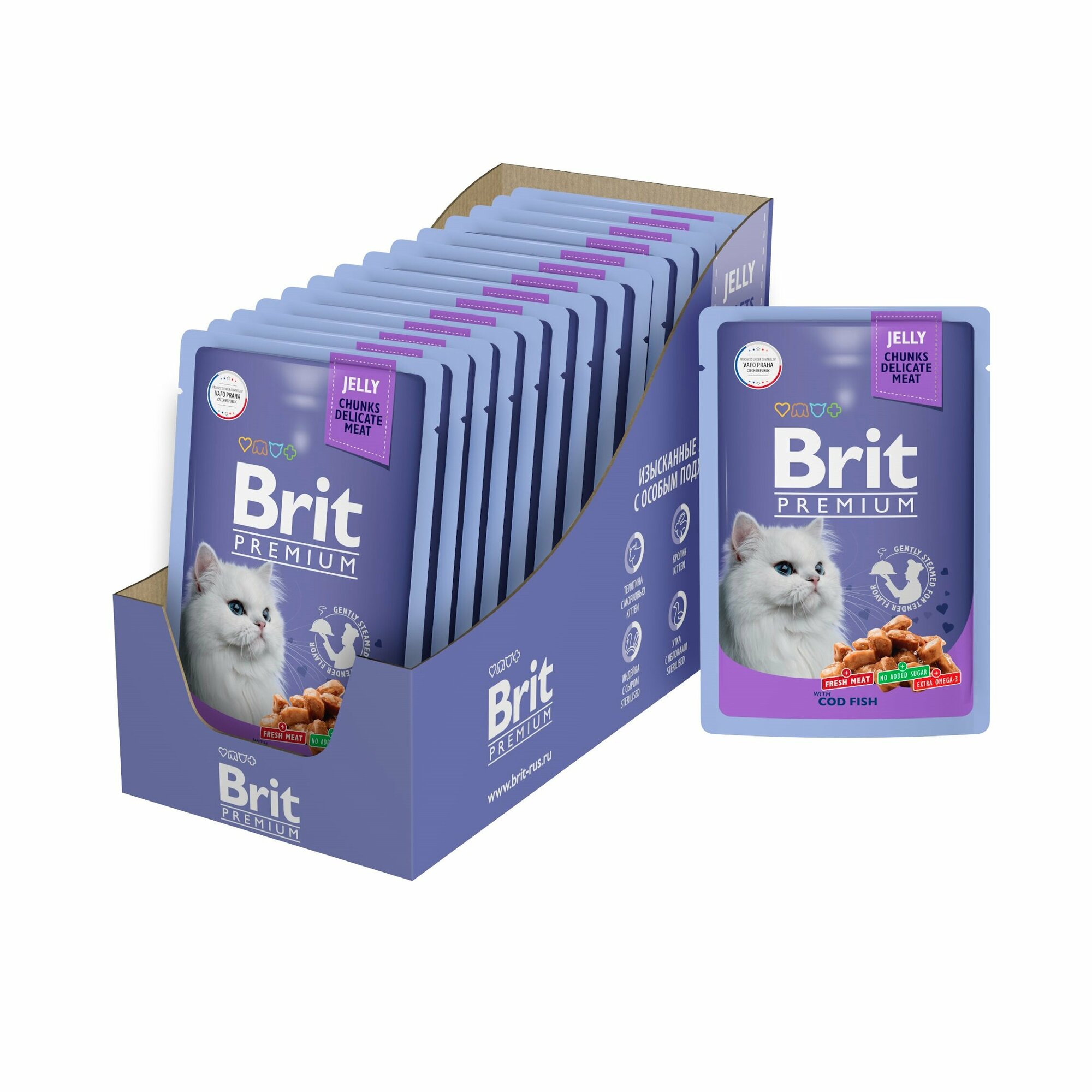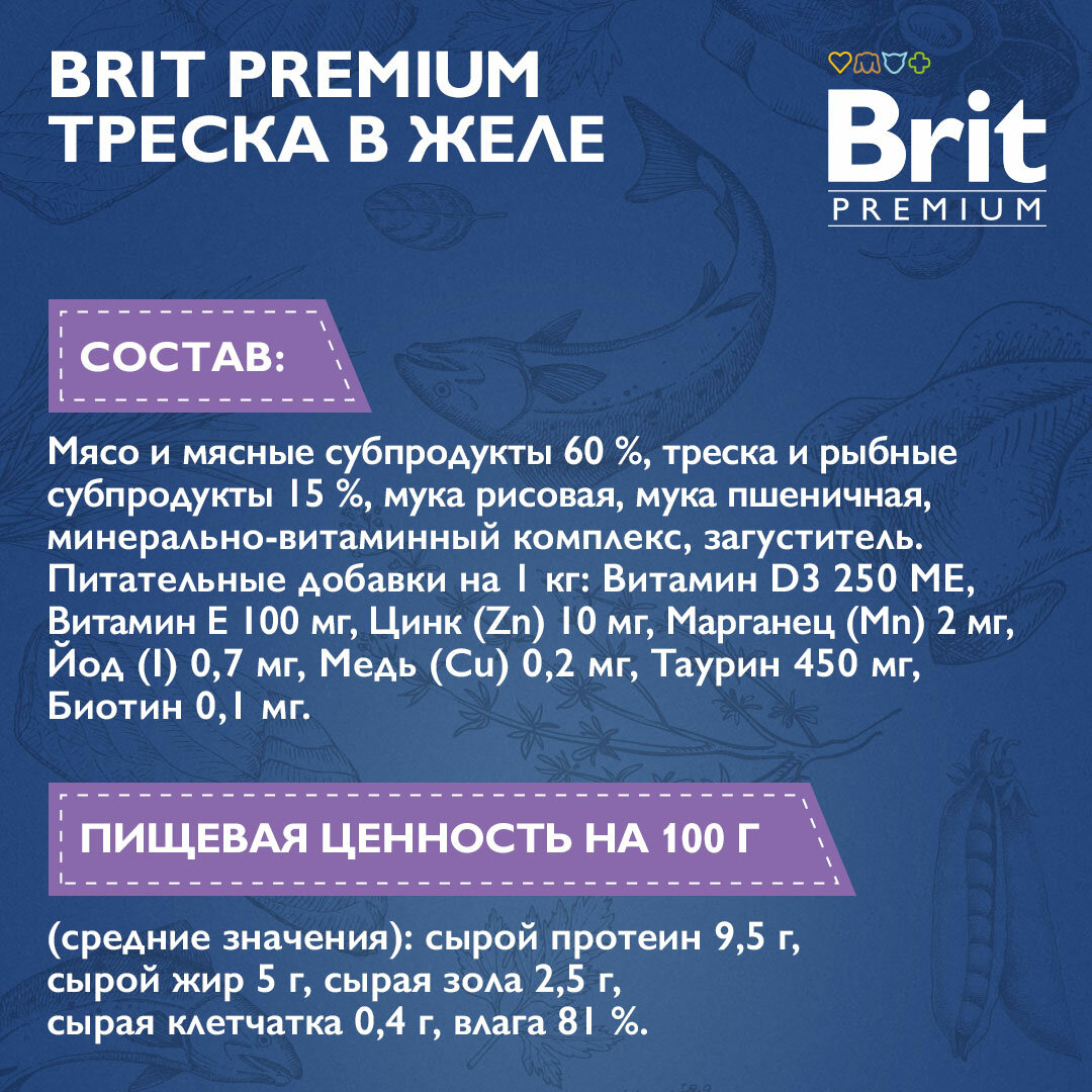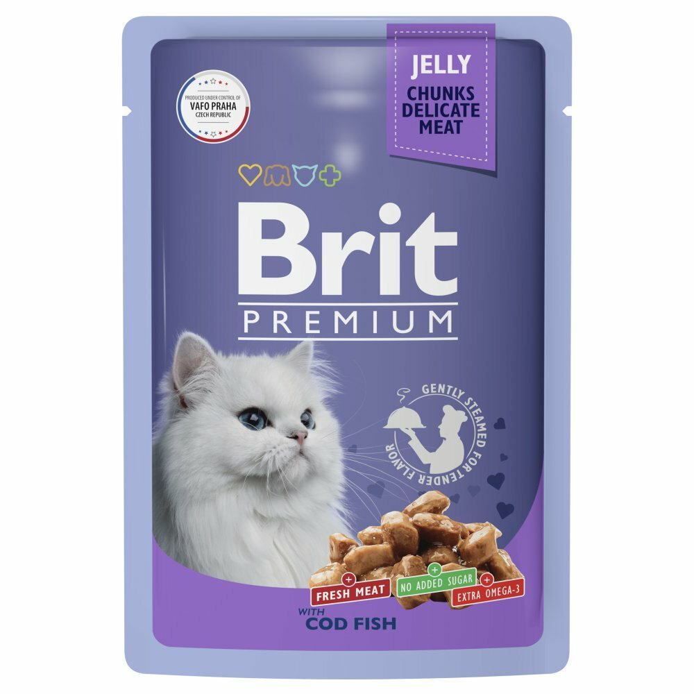 Brit Premium пауч для кошек (кусочки в желе) Треска, 85 г. упаковка 14 шт интересное: