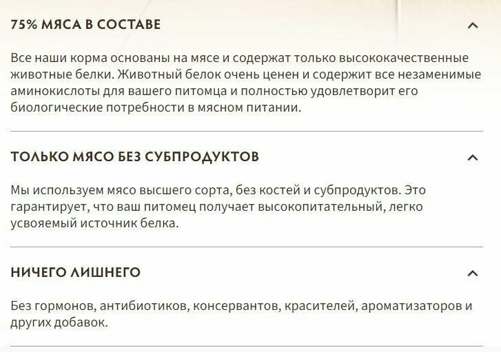 | Возраст животного | взрослые (1-6 лет) / котята (до 1 года) / пожилые (7+) |
