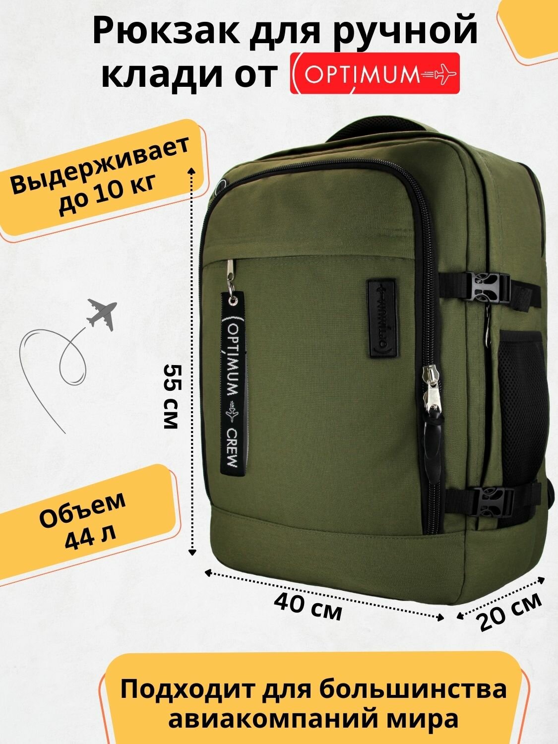 Рюкзак сумка чемодан ручная кладь S в самолет дорожная 44 л, хаки