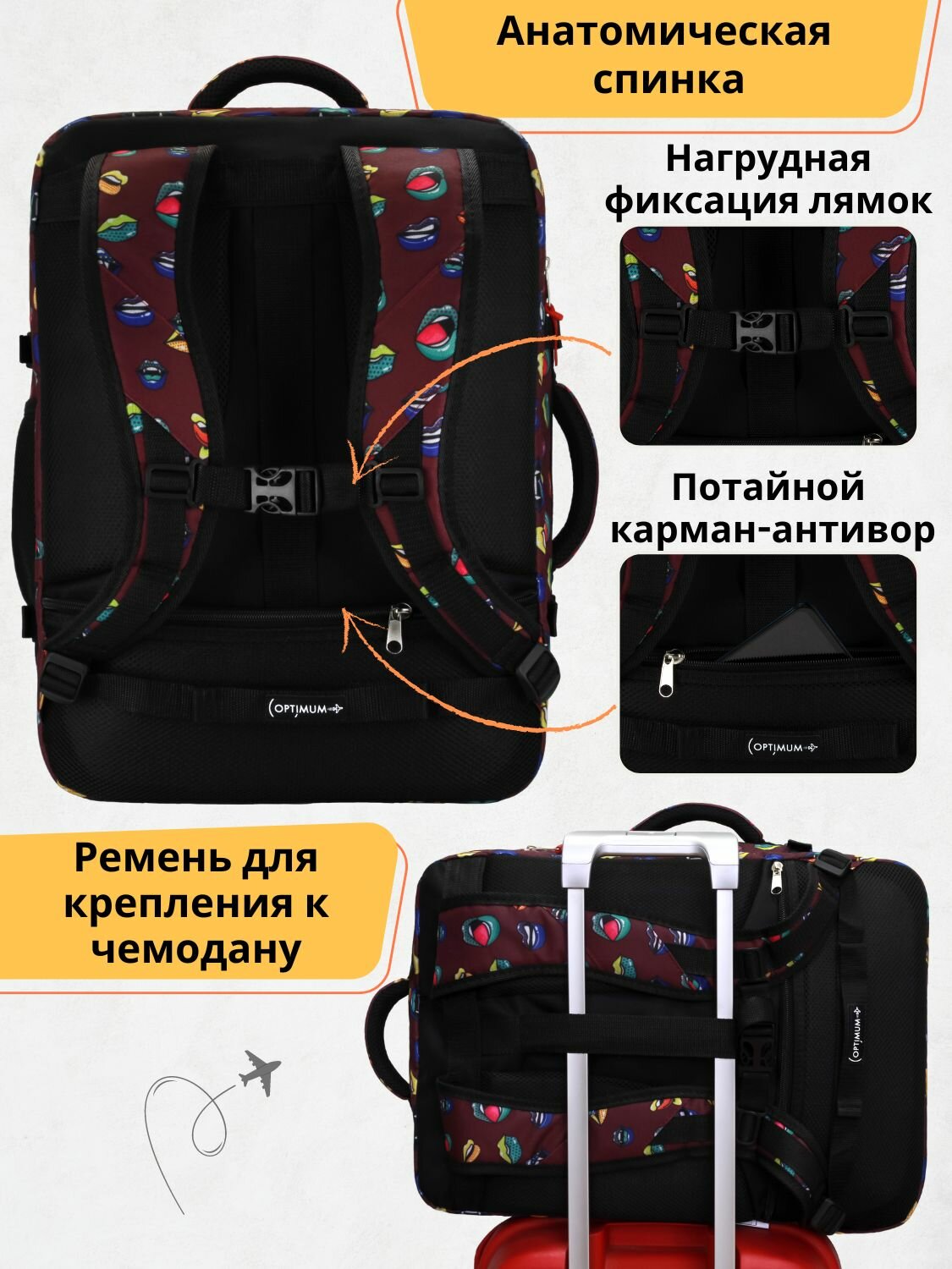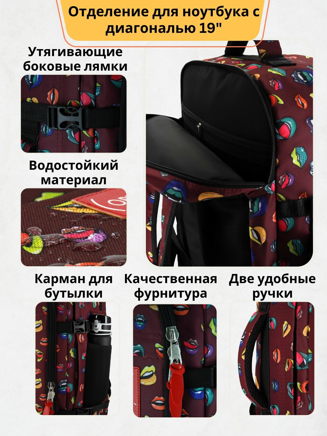 Рюкзак сумка чемодан ручная кладь S в самолет дорожная 44 л, губы