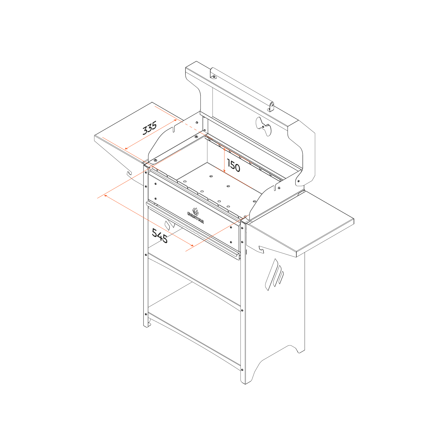 Гриль - мангал с крышкой, с термометром, с зольником, с нержавеющей накладкой, с двумя боковыми и двумя нижними полками Family Optima BBQ FOB 2000