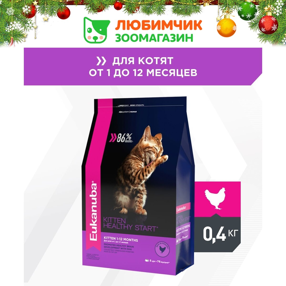 Купить Корм для котят Eukanuba Kitten Healthy Start сбалансиованный сухой, 400 г