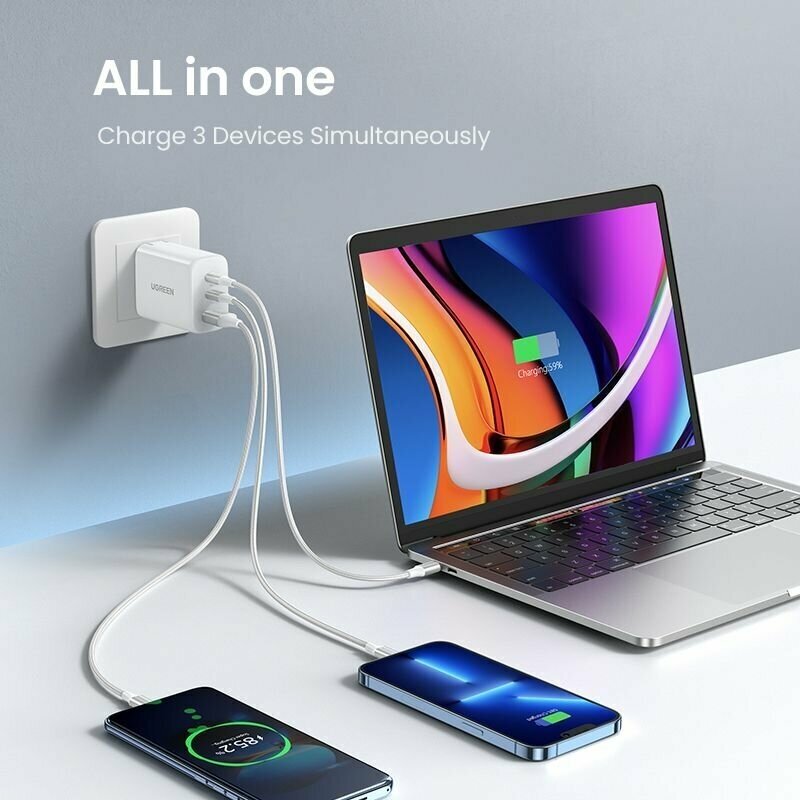 Сетевое зарядное устройство Ugreen USB-A+2USB-C 65W Fast Charger CD275 White (90496)