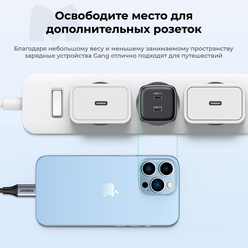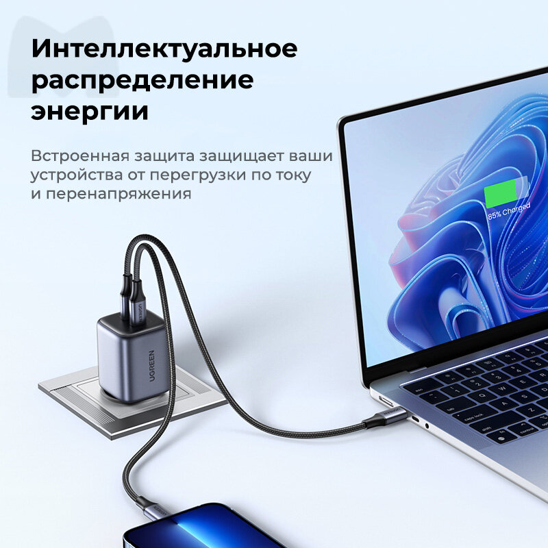 Сетевое зарядное устройство Ugreen CD294 (90573) Usb-c+usb-c, 45W, серый . интересное: