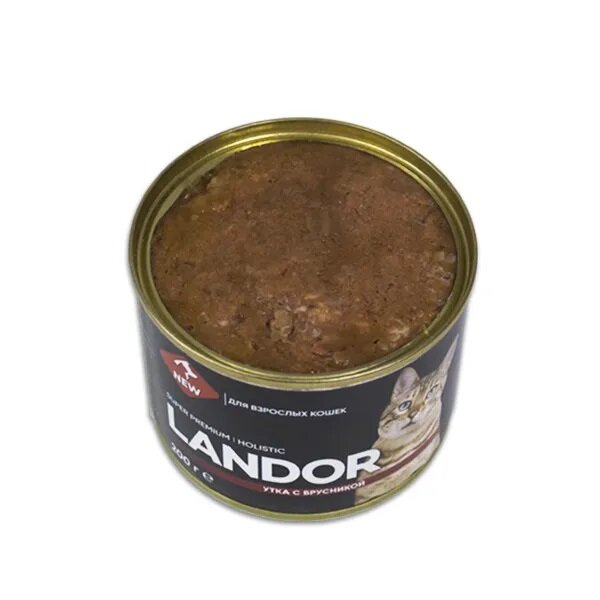 Корм влажный LANDOR полнорационный, для взрослых кошек утка с брусникой (200г х 6шт.)
