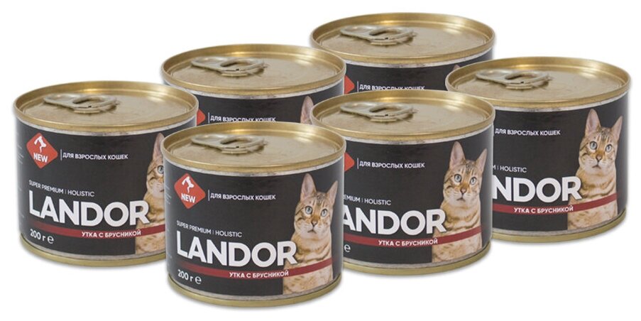 Купить Landor влажный корм для кошек, утка с брусникой (6шт в уп) 200 гр