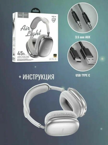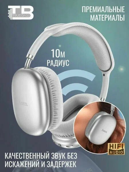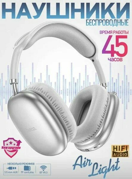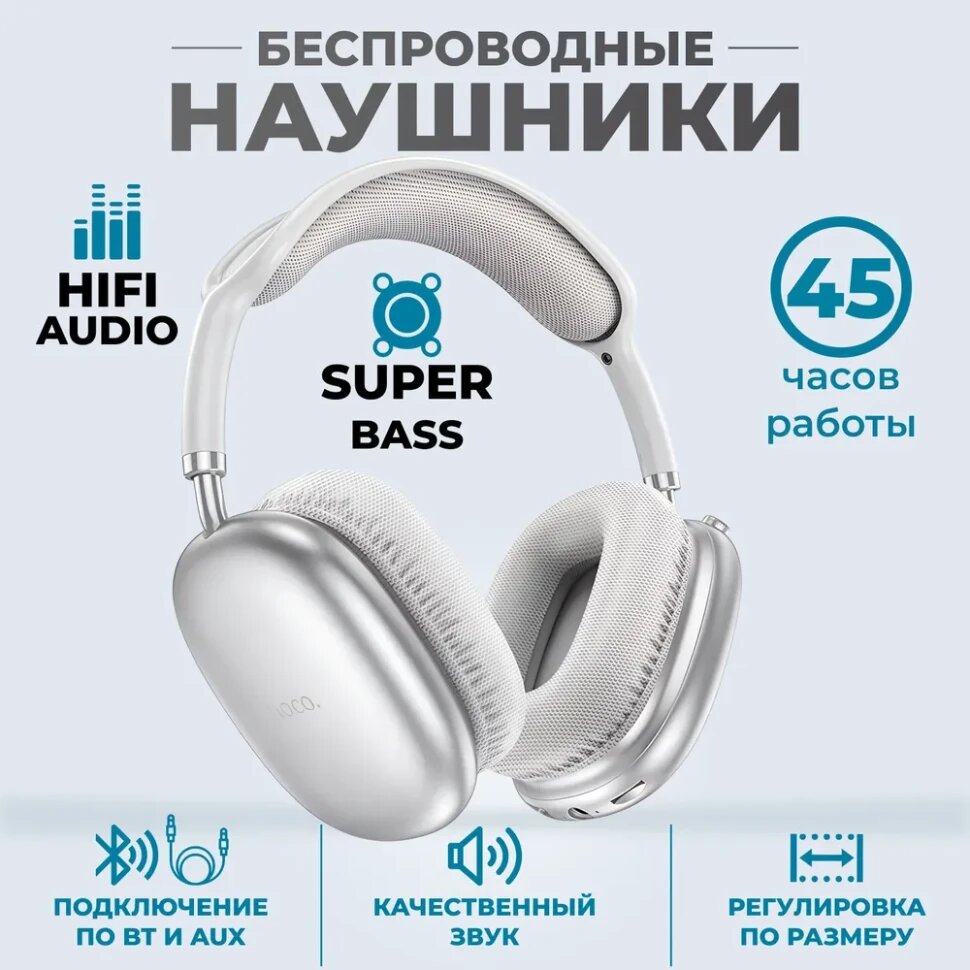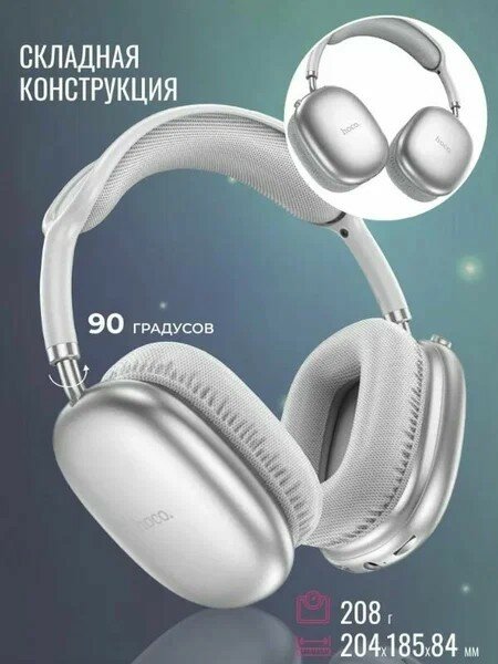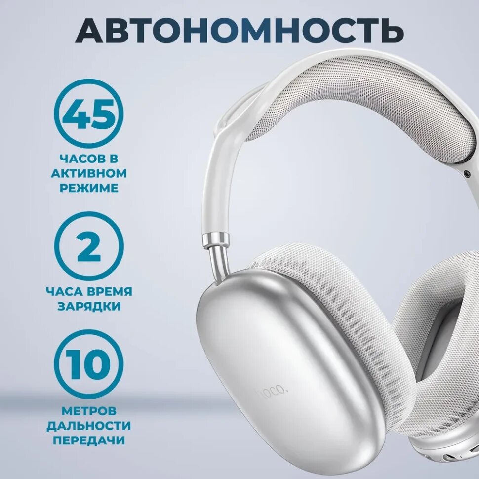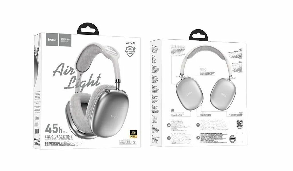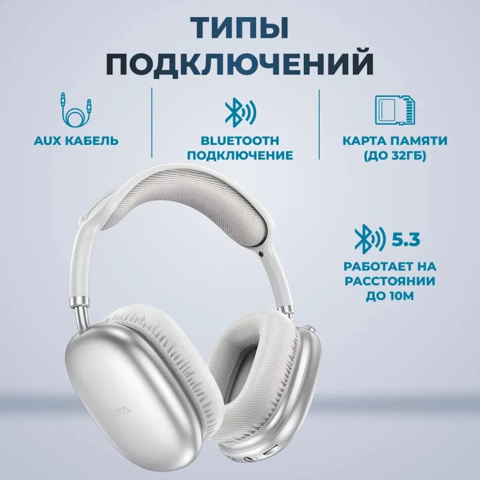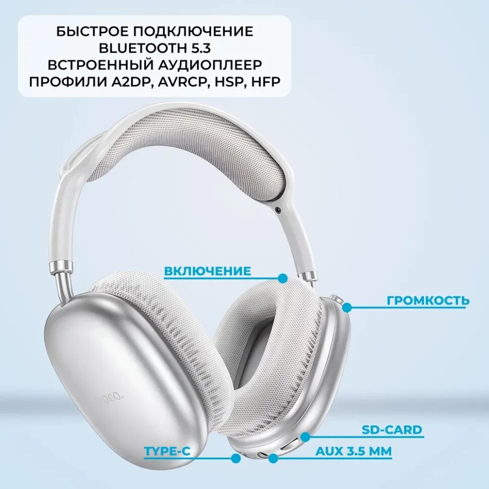 Наушники Hoco W35, беспроводные, полноразмерные, Bluetooth 5.0, 400 мАч, серебристый