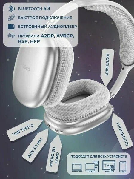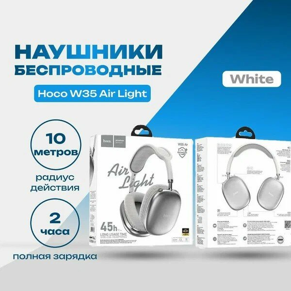 СохранитьСтереонаушники Bluetooth полноразмерные Hoco W35 Air Light V5.3/40ч белый интересное: