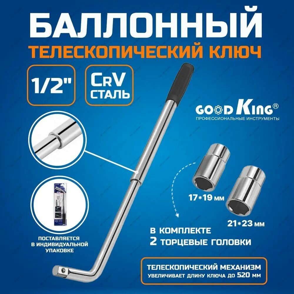 Ключ баллонный телескопический со сменными головками GOODKING, 17/19, 21/23мм KB-10003 (3 предмета), ключ балонный Г-образный