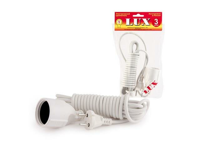 Удлинитель LUX 1 гнездо шнур 3 метра без заземления