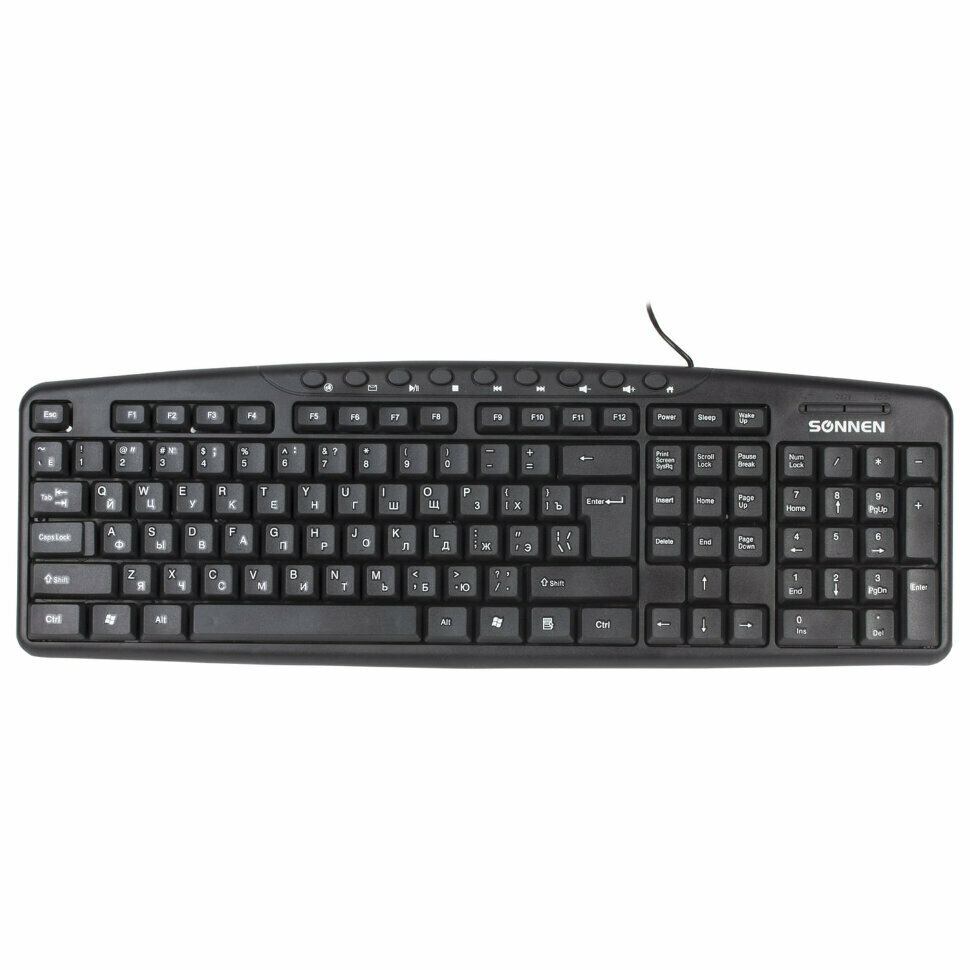 Клавиатура проводная SONNEN KB-8137, USB, 104 клавиши + 12 дополнительных, мультимедийная, черная, 512652