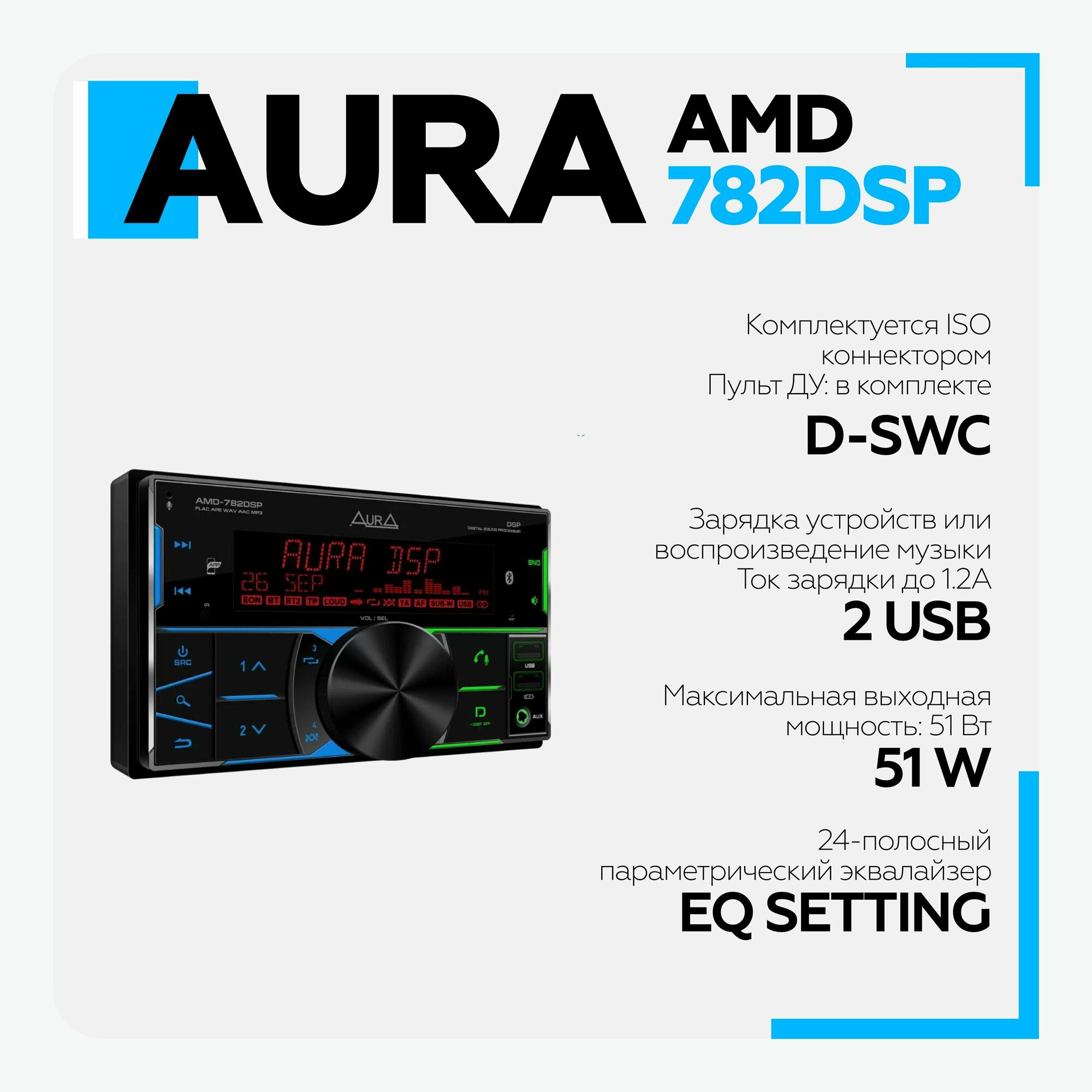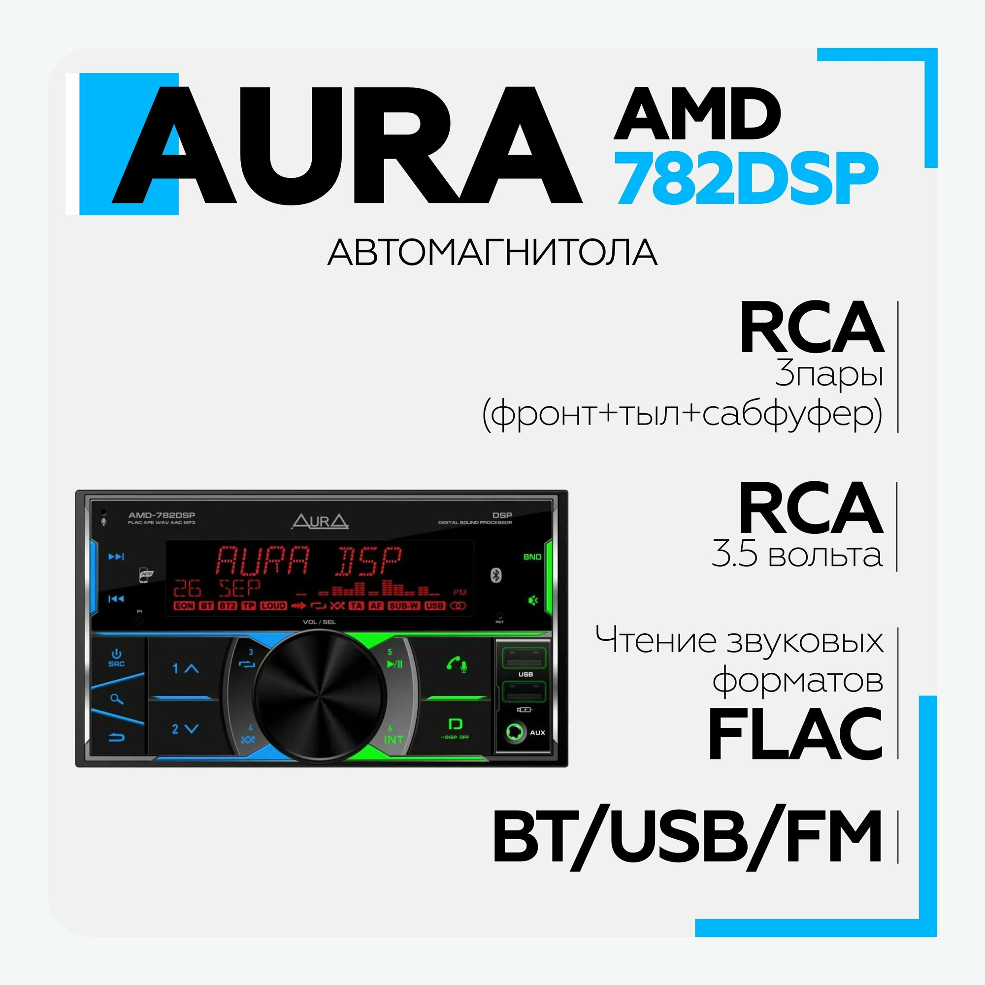 AURA AMD-782 DSP 2 DIN USB/BT ресивер интересное: