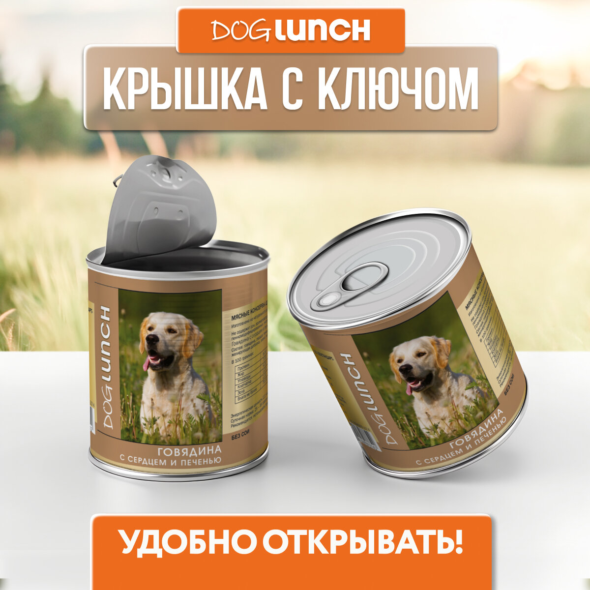 Дог Ланч консервы для собак Говядина, сердце и печень, 750 г. упаковка 12 шт