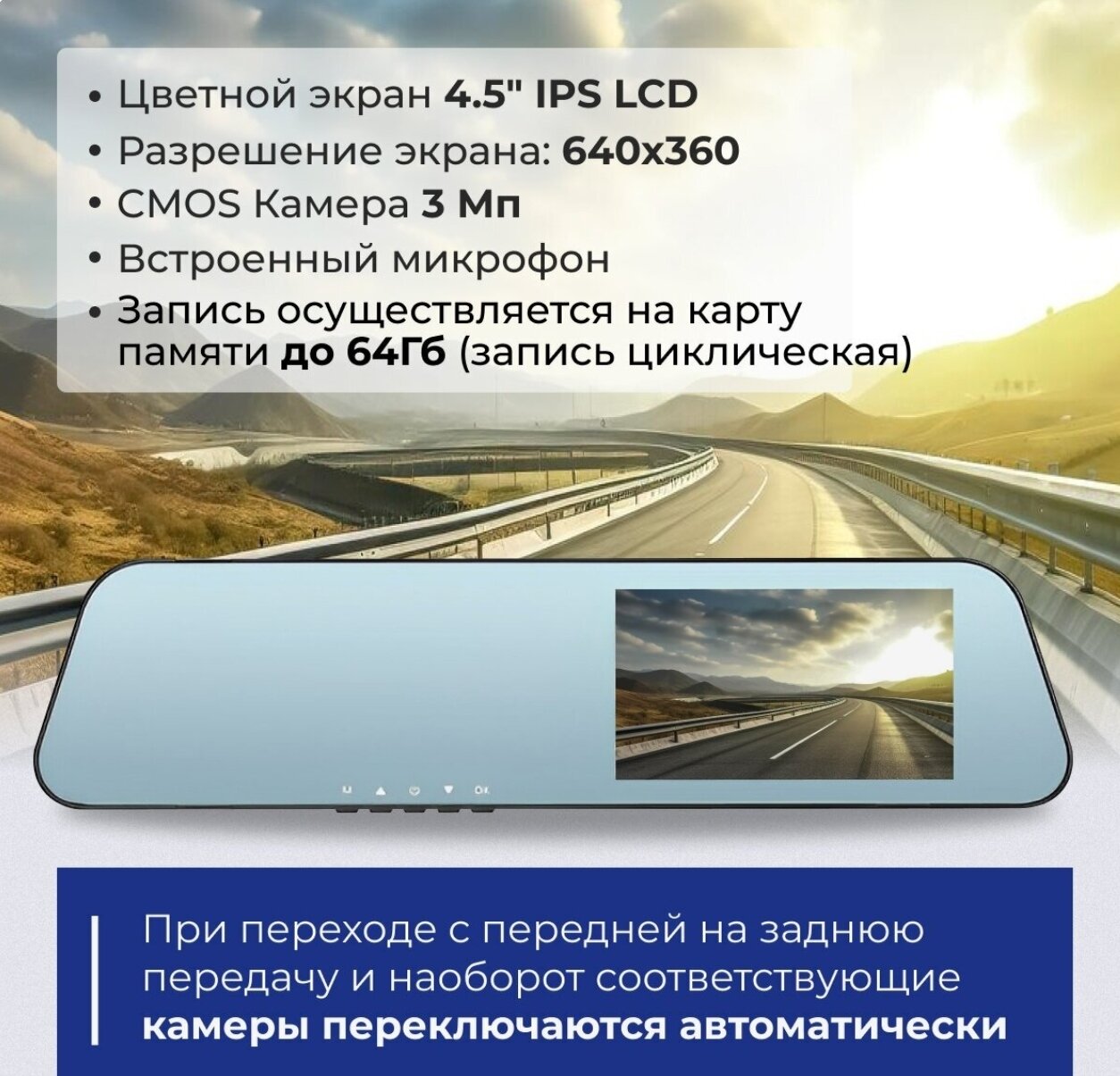 Автомобильный видеорегистратор-зеркало Eplutus D12. Датчик движения, дисплей 3,5", две камеры