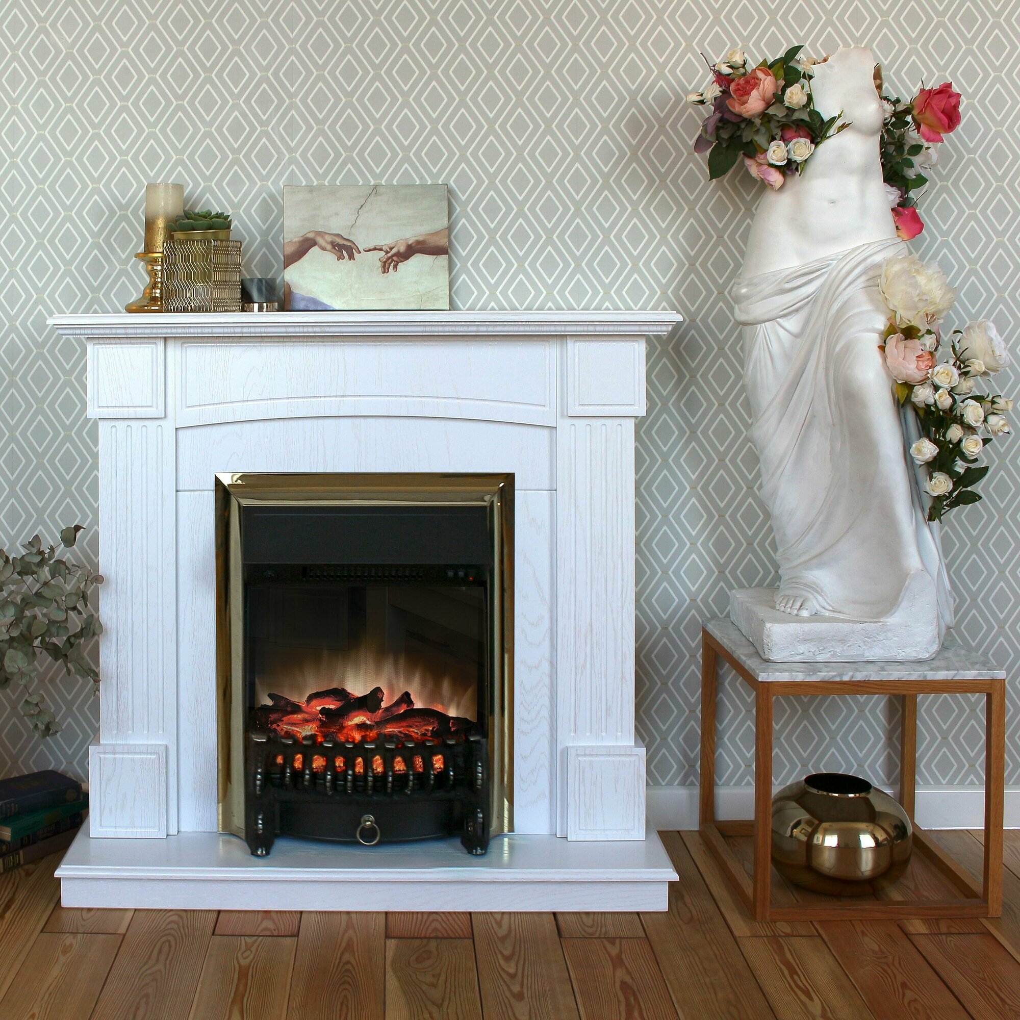 Электрокамин RealFlame Andrea STD/EUG WT-F513 с очагом Fobos Lux Brass