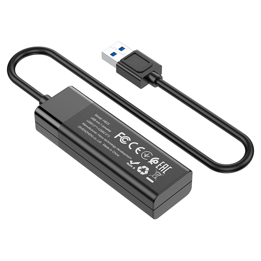 Переходник HOCO HB25 USB 3.0/2.0 HUB на 4 порта, черный