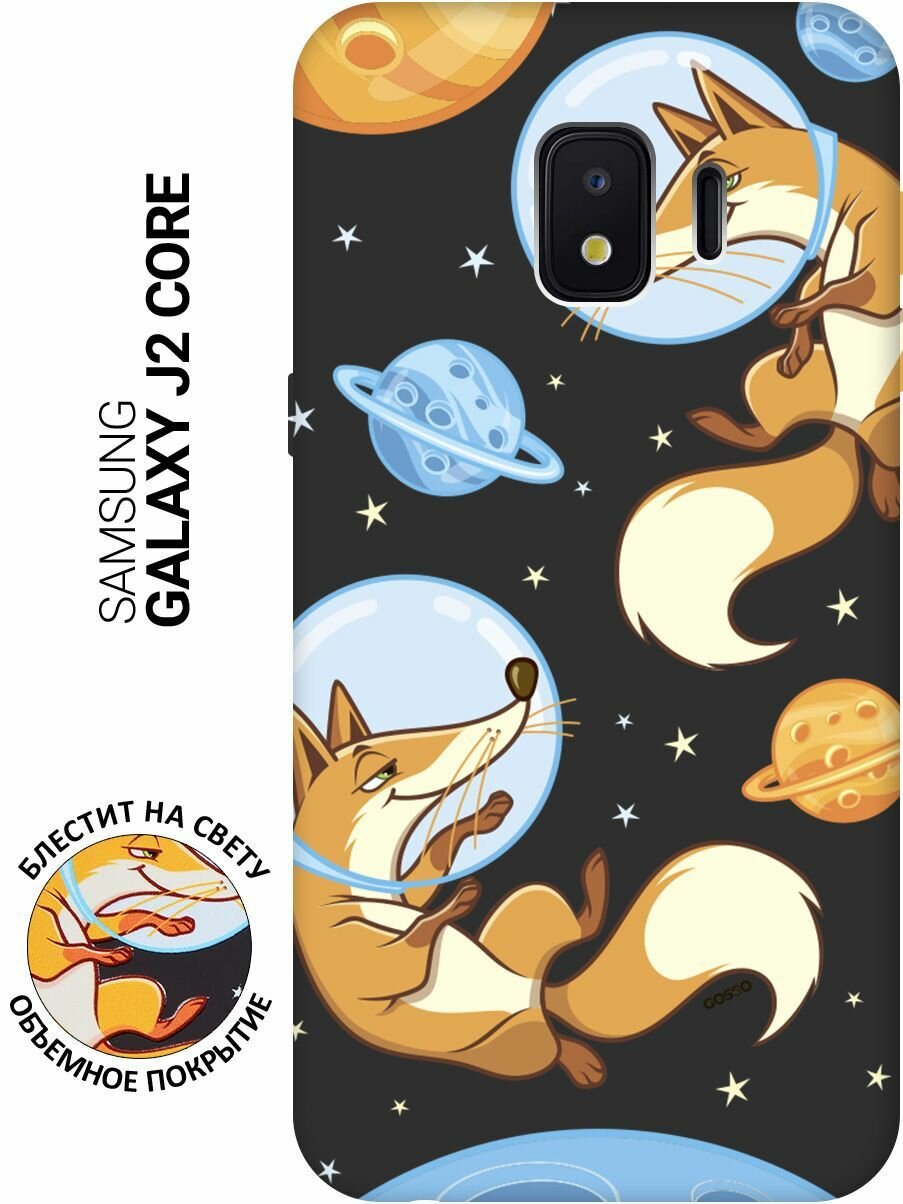 Матовый Soft Touch силиконовый чехол на Samsung Galaxy J2 Core / Самсунг Джей 2 Кор с 3D принтом "CosmoFoxes" черный