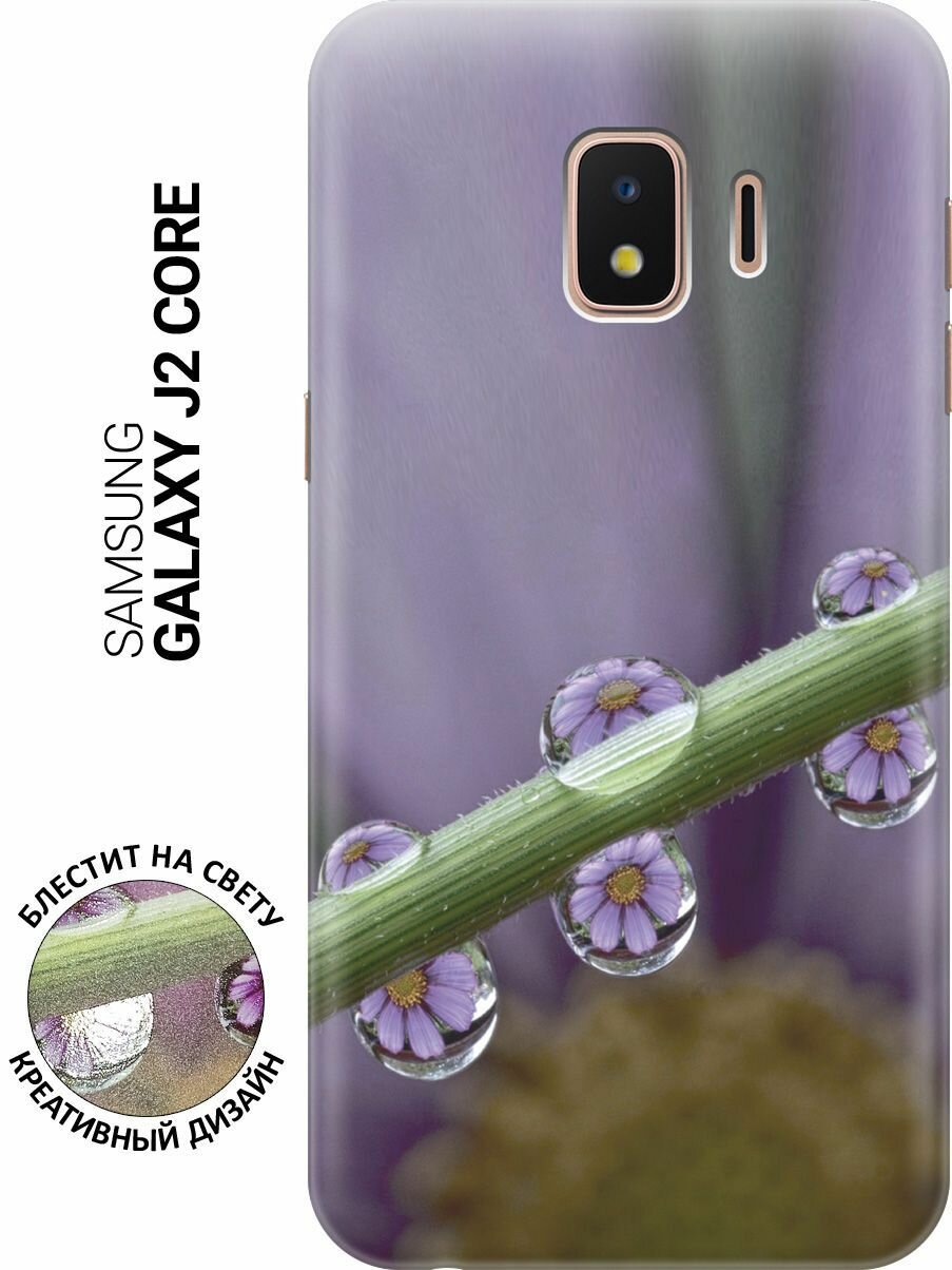 Силиконовый чехол на Samsung Galaxy J2 Core / Самсунг Джей 2 Кор с эффектом блеска "Сиреневые цветы в каплях"