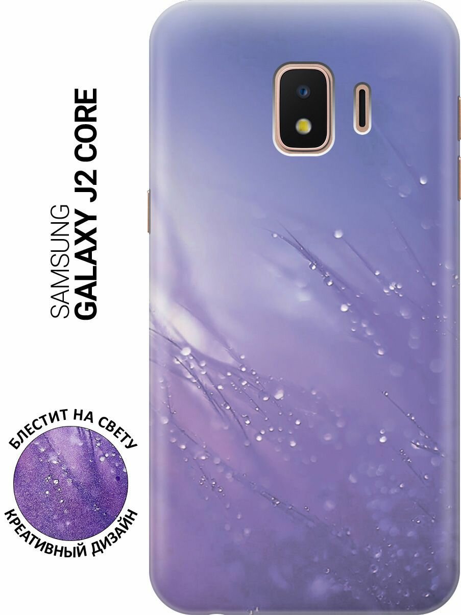 Силиконовый чехол на Samsung Galaxy J2 Core / Самсунг Джей 2 Кор с эффектом блеска "Сиреневые цветы в каплях"