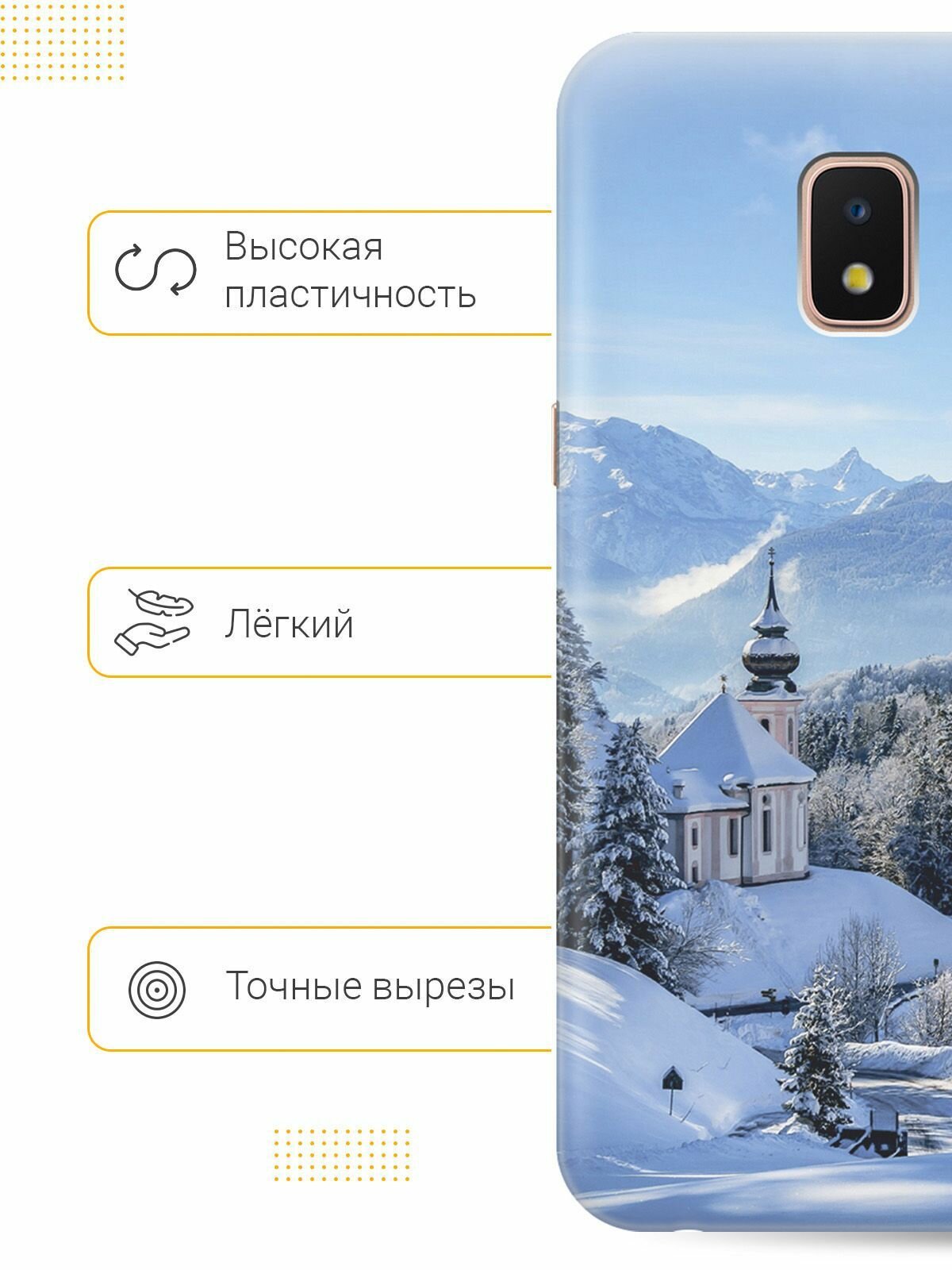 СохранитьСиликоновый чехол на Samsung Galaxy J2 Core, Самсунг Джей 2 Кор с принтом "Заснеженные горы" интересное: