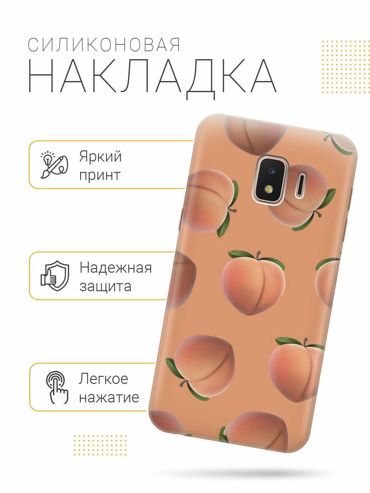 Силиконовый чехол на Samsung Galaxy J2 Core, Самсунг Джей 2 Кор с принтом "Падающие персики" интересное: