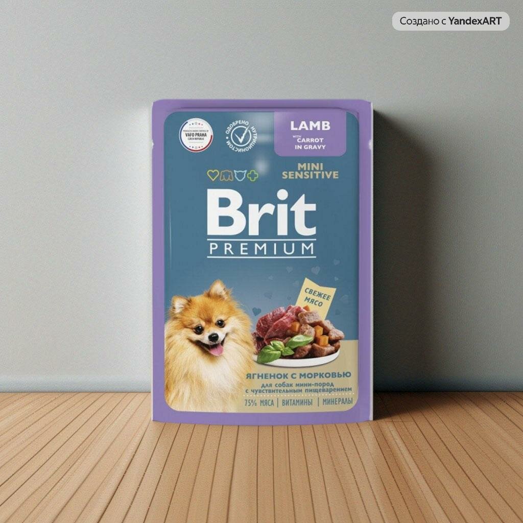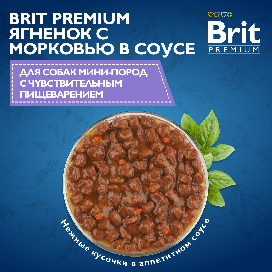 Влажный корм для собак Brit Premium для взрослых мини собак с чувствительным пищеварением, ягненок с морковью в соусе, пауч 1 уп. х 14 шт. х 85 г (для мелких пород)
