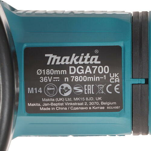 Шлифмашина аккумуляторная MAKITA угловая DGA700Z (36В (18Вx2), 180мм, 7800 об/мин, без акк и зар устр, 5кг)