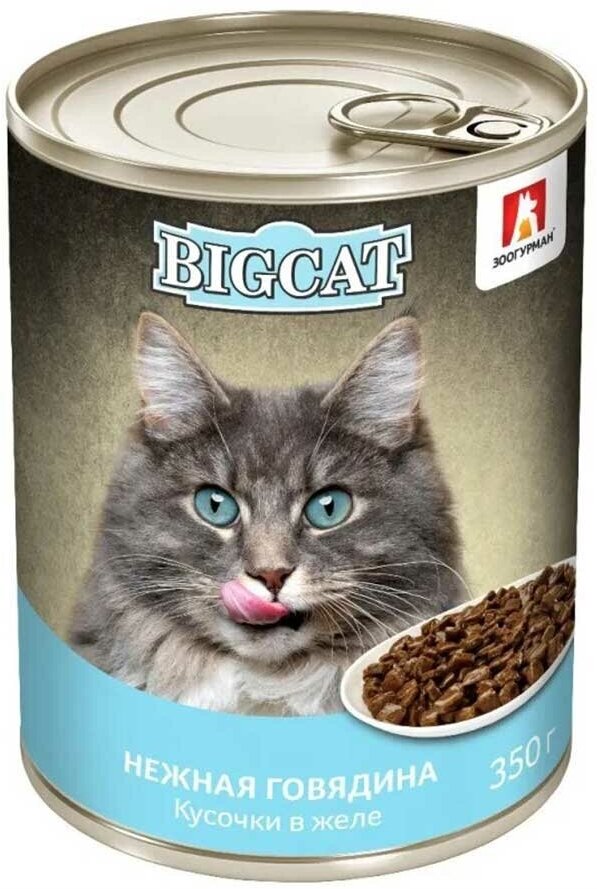 Купить Консервы zoogurman для кошек говядина кусочки в желе big cat 350г 7965