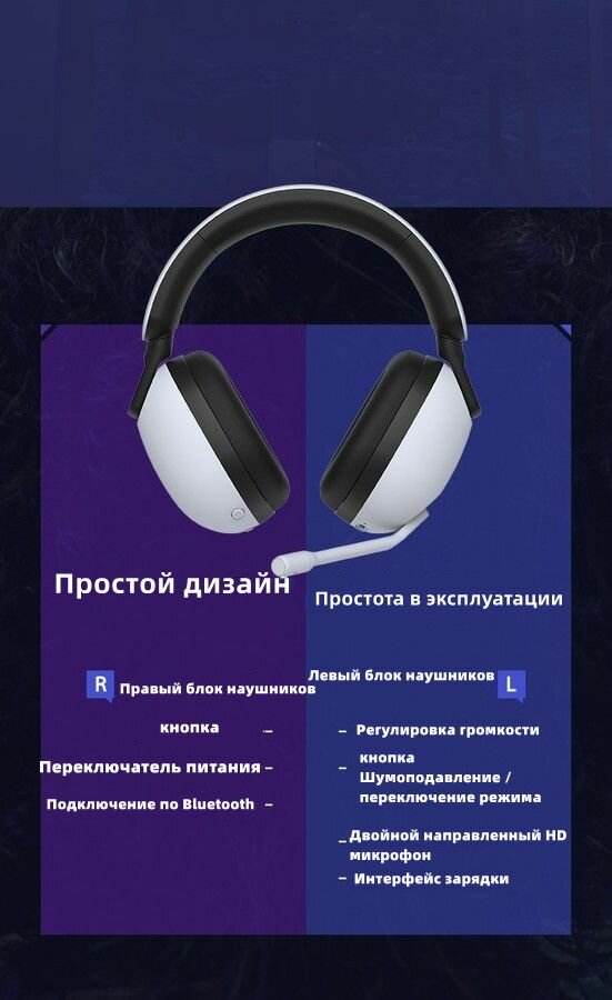 СохранитьSONY Наушники полноразмерные беспроводные игровые INZONE H9 с активным шумоподавлением. Цвет: белый интересное: