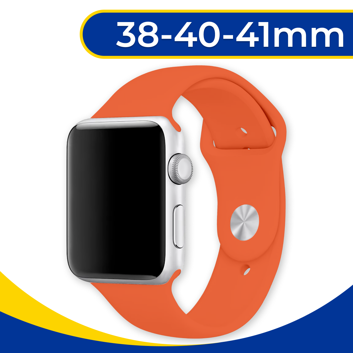 Купить Силиконовый ремешок на Apple Watch 1-9, SE 38, 40, 41 мм / Спортивный браслет на смарт часы Эпл Вотч 1, 2, 3, 4, 5, 6, 7, 8, 9 и СЕ / Нежно-оранжевый