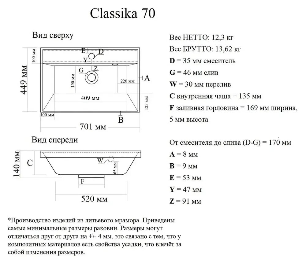 Раковина Madera Classica 70 интересное: