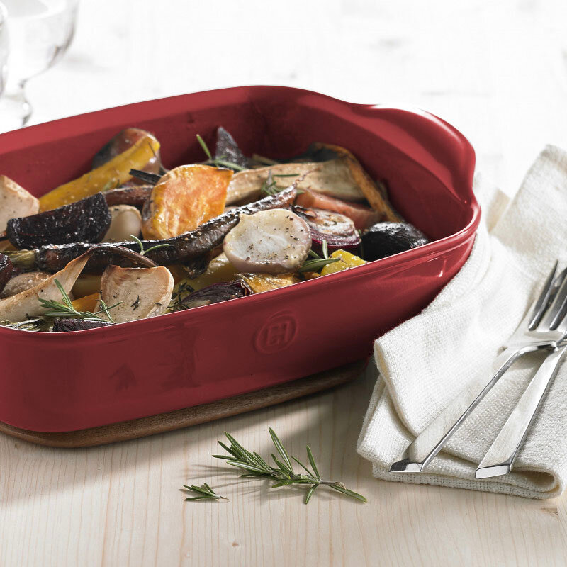Керамическая прямоугольная форма для выпечки и запекания, 29 х 19 см, красный (гранат), серия Посуда для запекания, Emile Henry, EH349650