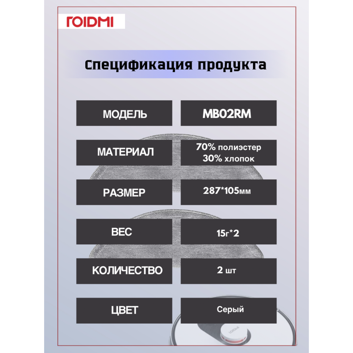 Оригинальные салфетки из микрофибры ROIDMI для робота-пылесоса белого цвета ROIDMI EVE Plus, 2 шт., серый интересное: