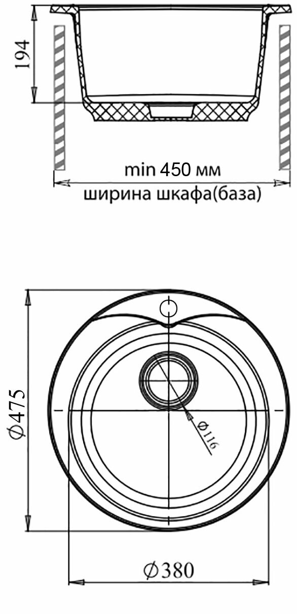 Мойка GRANFEST GF-R480 D =470 мм, круглая (черный - 308)