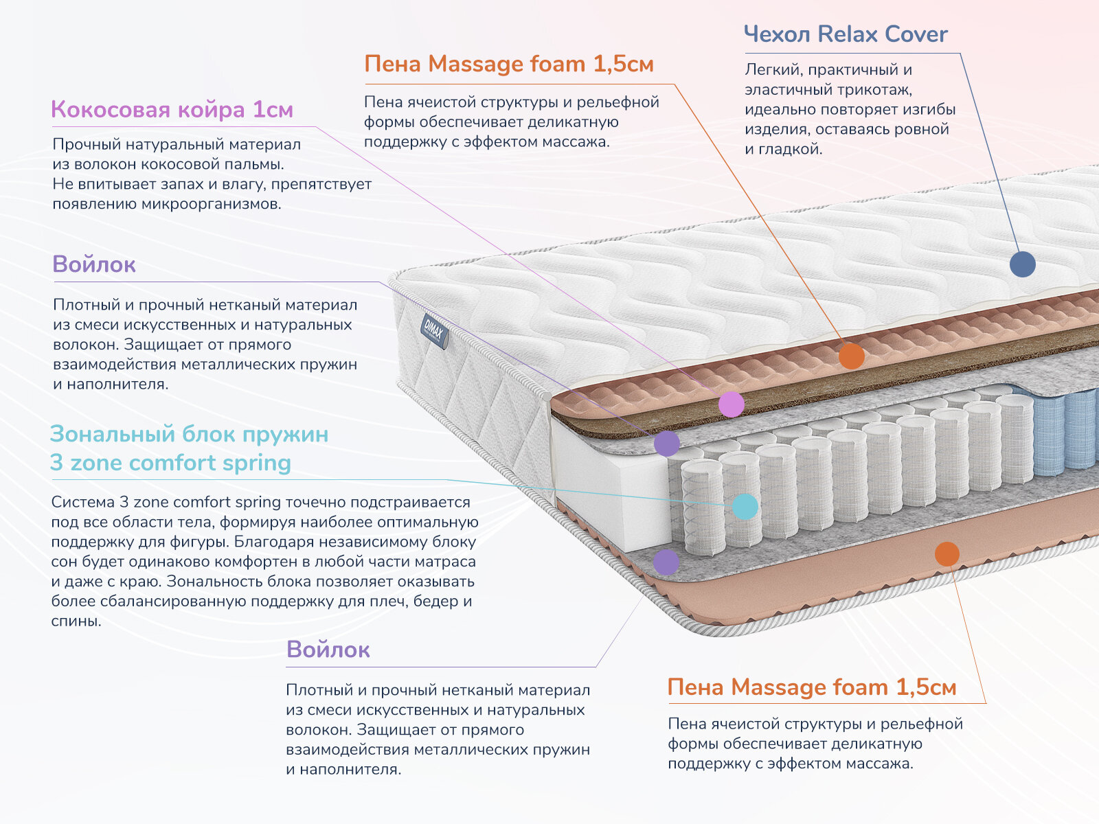 СохранитьМатрас Dimax Relmas Cocos 1 3Zone 110х190 интересное: