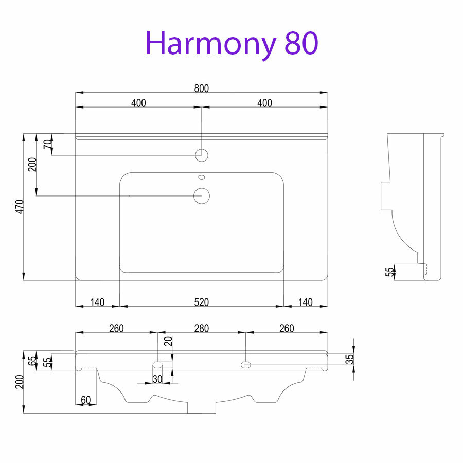 Умывальник мебельный Dreja Harmony 80, 640207, керамический