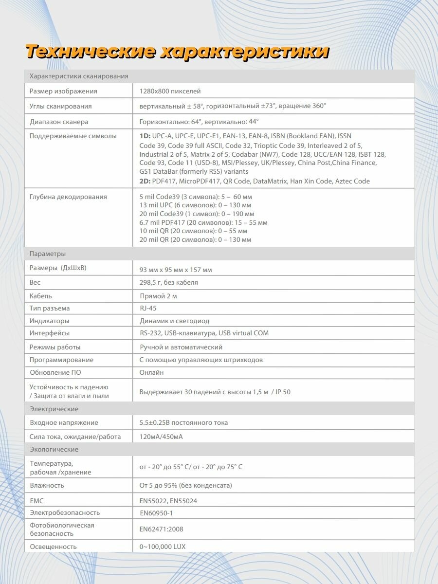 | Вид декодируемых кодов | 1D / 2D |