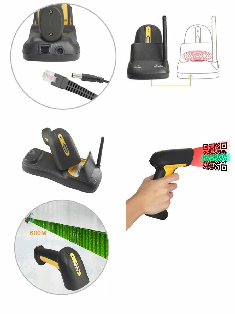 Беспроводной сканер штрих-кода МойPOS MSC-9516W2D, арт. 4534, 2D, черный, без подставки Cradle
