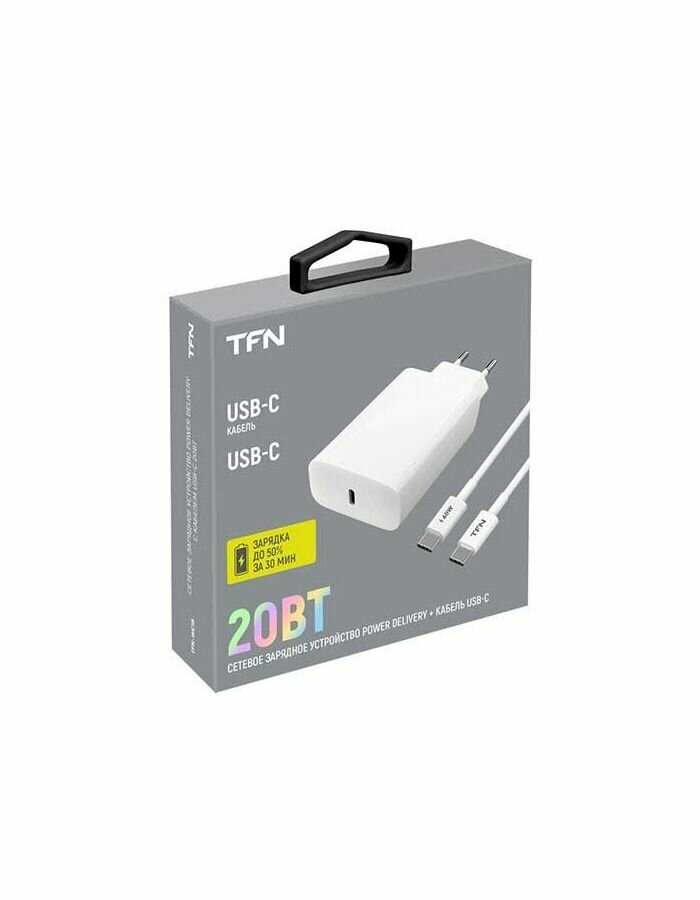 Купить Сетевое зарядное устройство TFN, TypeC, 20Вт, с кабелем TypeC, Цвет:белый ( TFN,TFN-WC16)