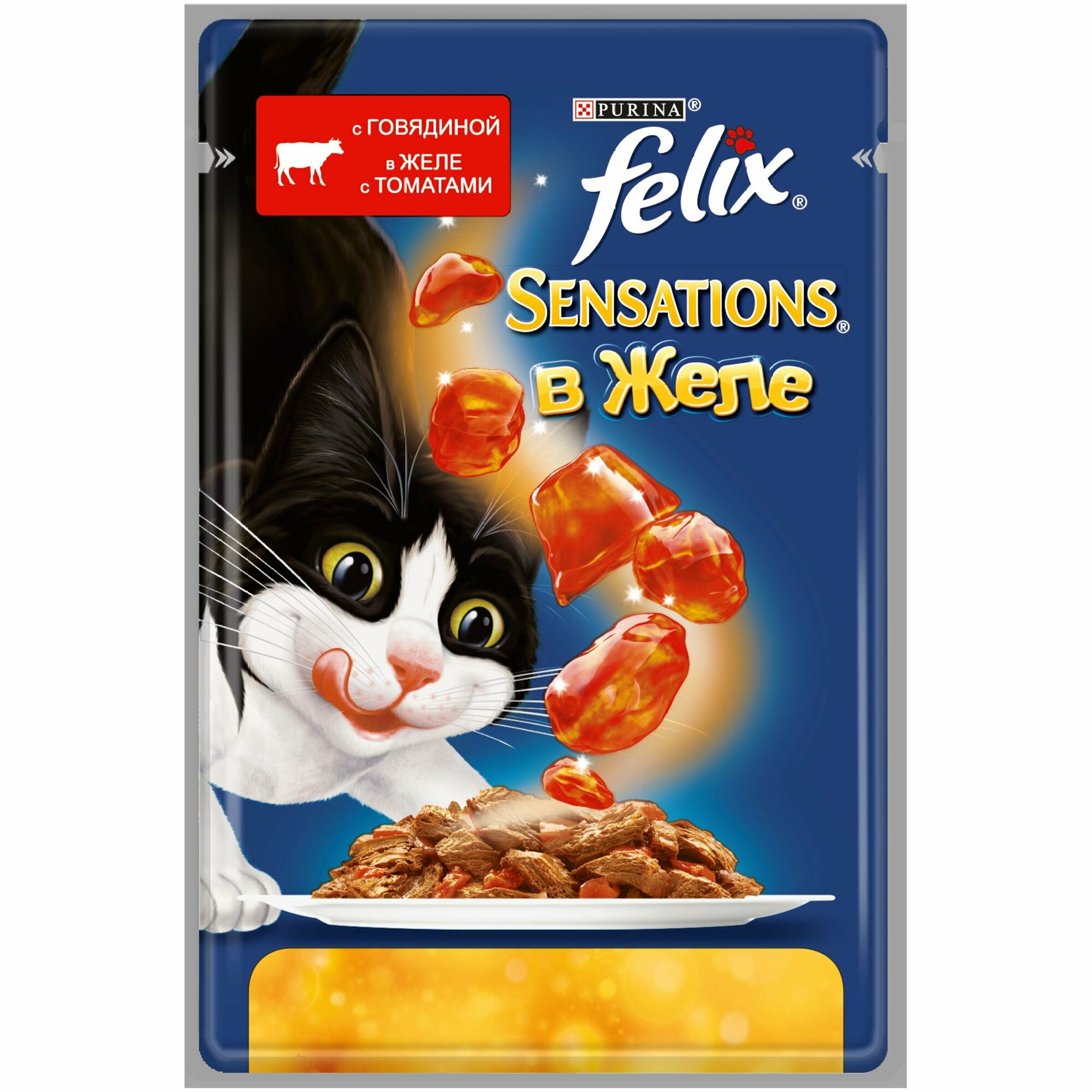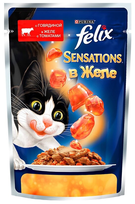 Felix Паучи Sensations кусочки в желе для кошек с говядиной и томатами (12232833123189651244963712493529) | Sensations 0,085 кг 24142 (26 шт)