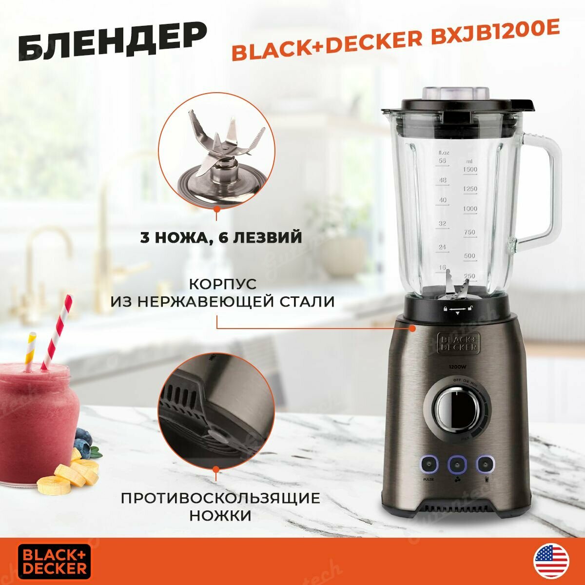 Стационарный блендер Black+Decker BXJB1200E / 1200 Вт / импульсный режим