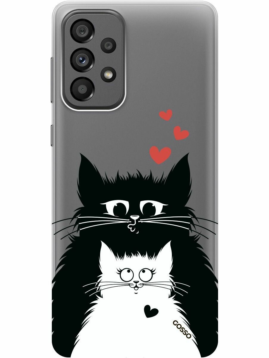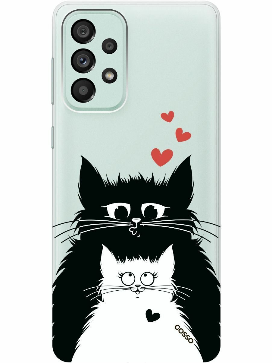 Купить Силиконовый чехол на Samsung Galaxy A73 5G, Самсунг А73 5Г с 3D принтом "Cats in Love" прозрачный
