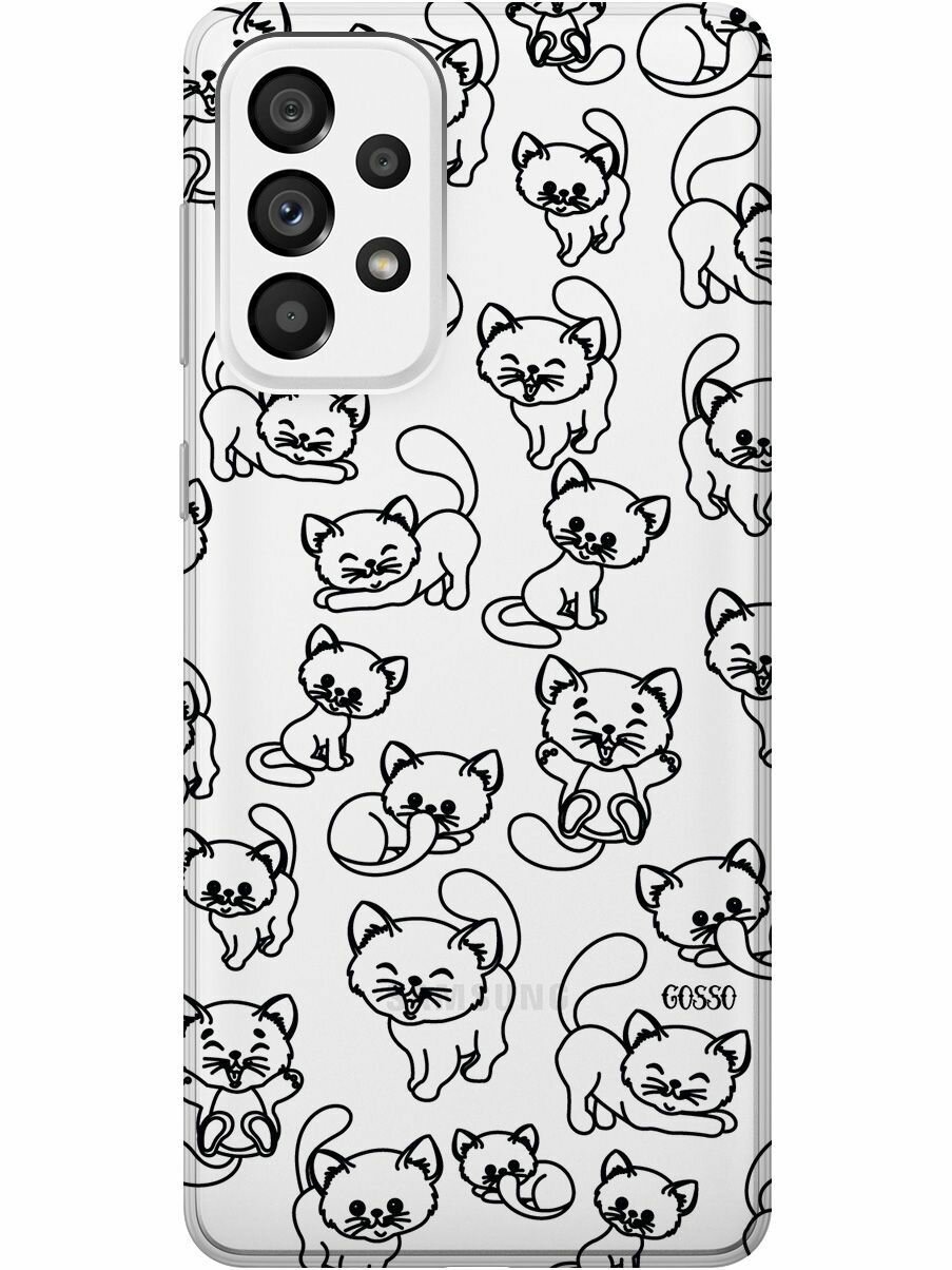 СохранитьСиликоновый чехол на Samsung Galaxy A73 5G, Самсунг А73 5Г с 3D принтом "Cute Kitties" прозрачный интересное: