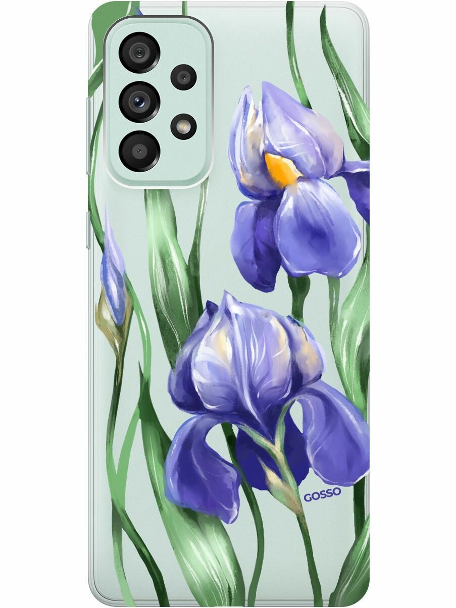 СохранитьСиликоновый чехол на Samsung Galaxy A73 5G, Самсунг А73 5Г с 3D принтом "Amazing Irises" прозрачный интересное:
