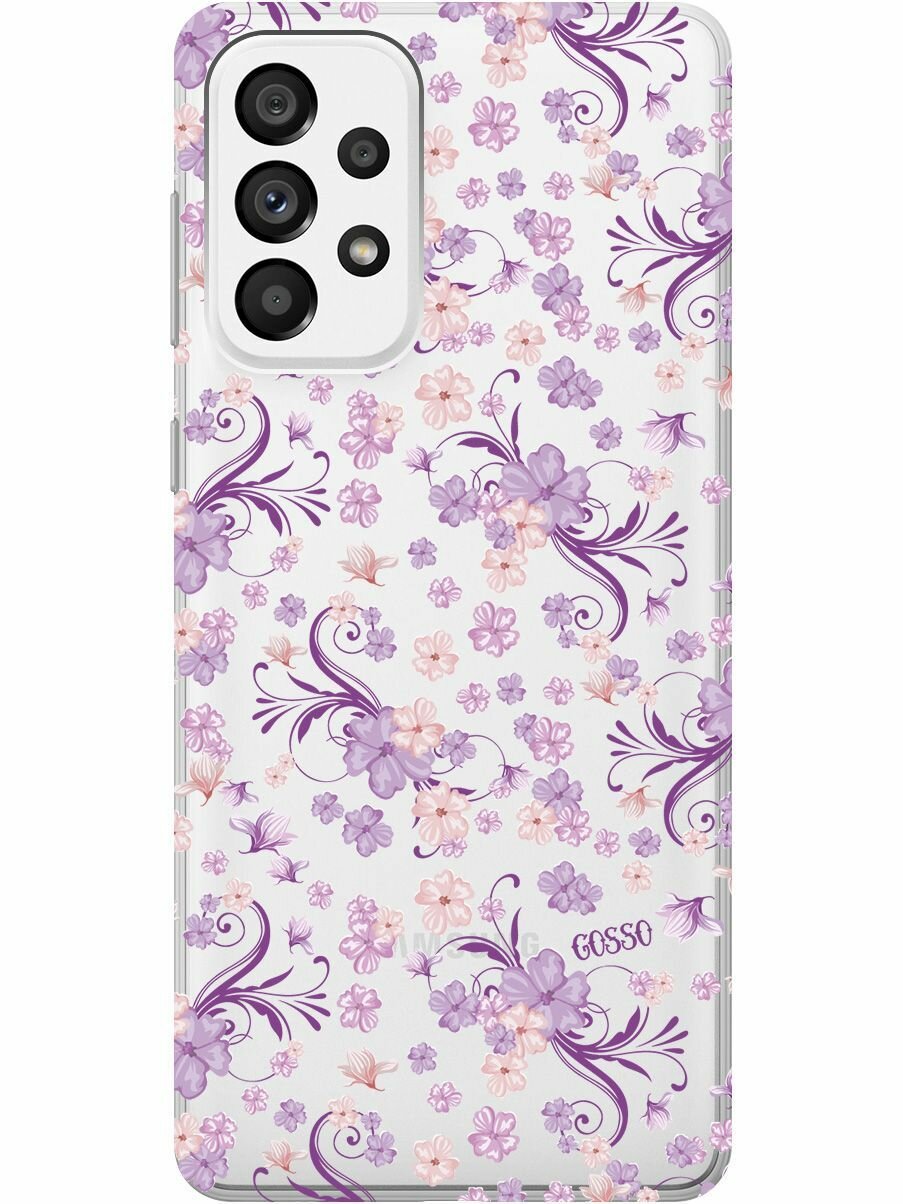 Купить Силиконовый чехол на Samsung Galaxy A73 5G, Самсунг А73 5Г с 3D принтом "Lilac Flowers" прозрачный