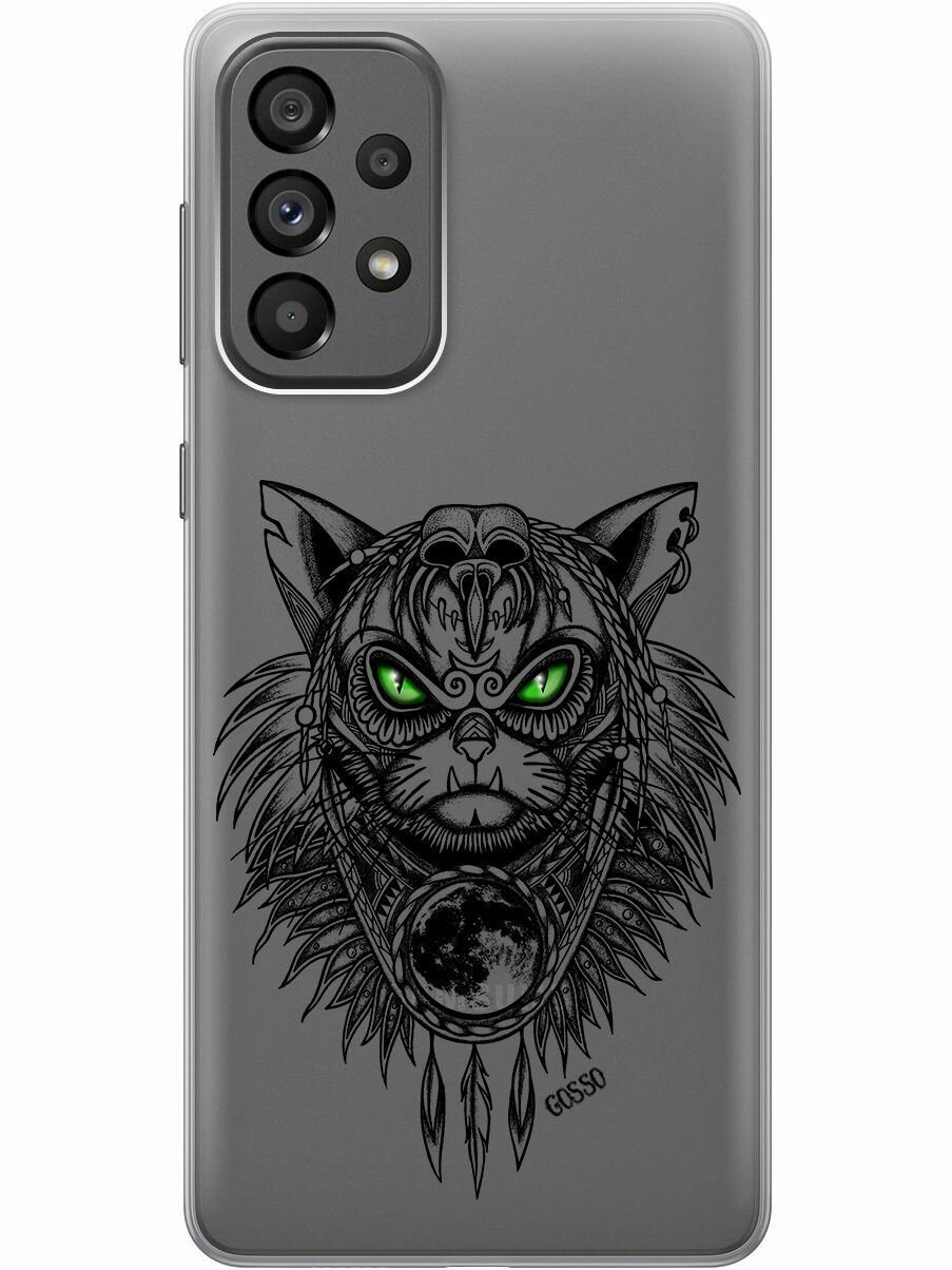 Купить Силиконовый чехол на Samsung Galaxy A73 5G, Самсунг А73 5Г с 3D принтом "Shaman Cat" прозрачный